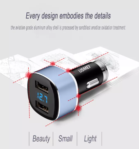 【USMEI】C6 Car Charger With Breathing Light Car Battery Power Indicator Dual USB Ports - Black