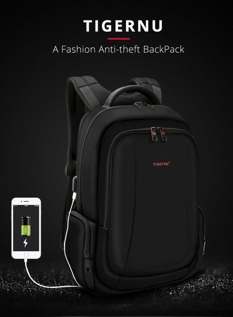 【TIGERNU】Notebook Backpack / Laptop Backpack T-B3143 15.6 inch Anti-Theft & Waterproof by Double Zip with USB Charger Port & PadLock