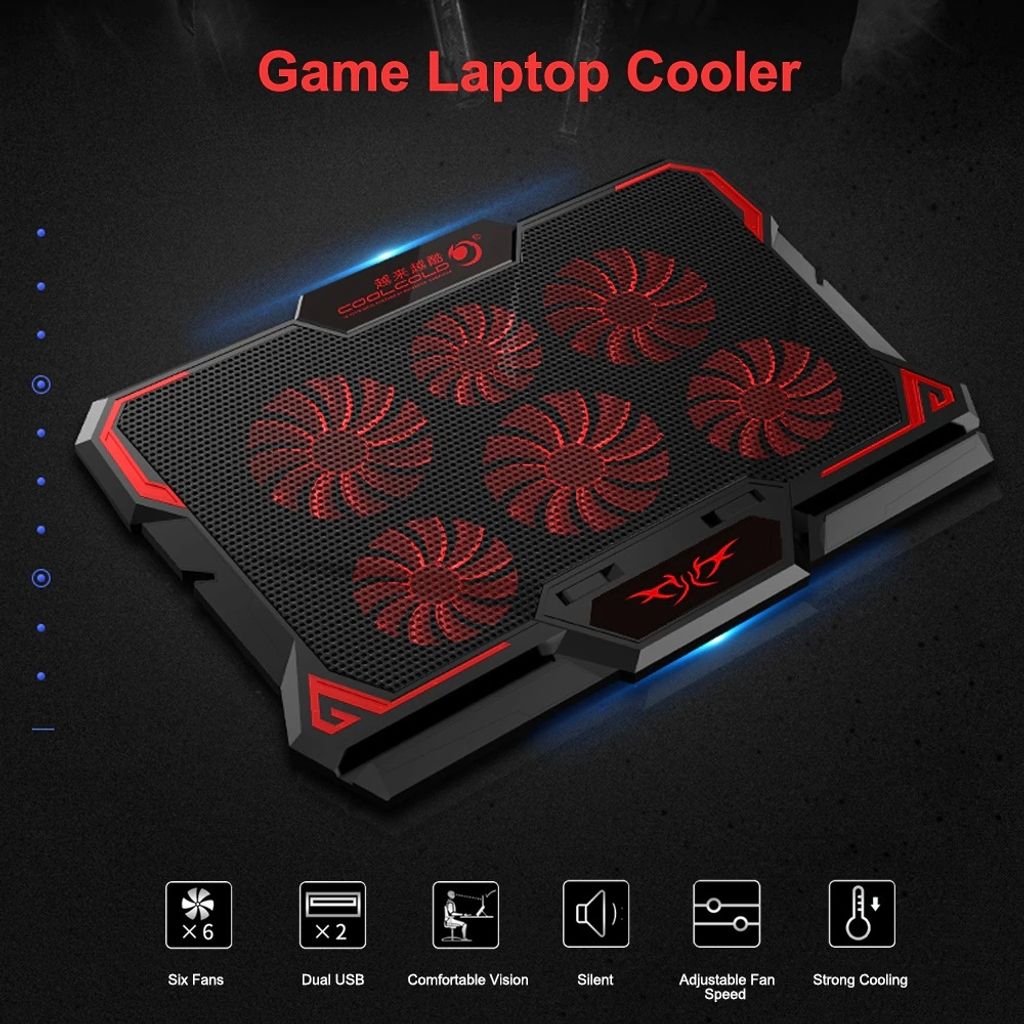 COOLCOLD K38 Notebook Cooler Pad / Notebook Cooler Pad / Laptop Air Cooling Fan Computer Support Stand Six-Fans Cooler Adjustable Wind Speed Low Noise