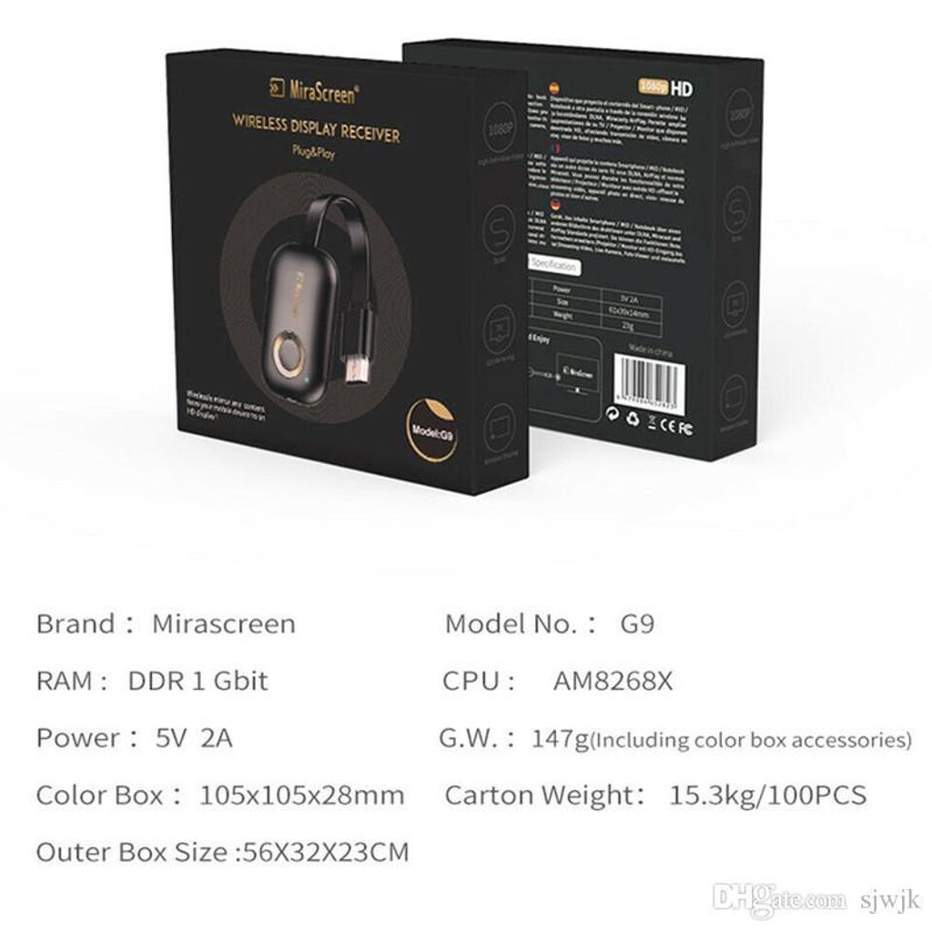 Promotion MiraScreen G9 Plus Display Dongle 1080P Miracast Airplay DLAN Mirror Screen Ratings: 0 - 0 votes